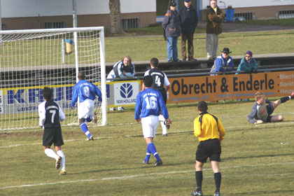 Ausgangspunkt, sein scharf getretener Freistoß fand auf Umwegen über